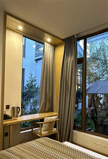 落地窗可以看到花園美景,提供一次性拖鞋,馬桶墊,床品也是老板精挑細選的純棉制品。