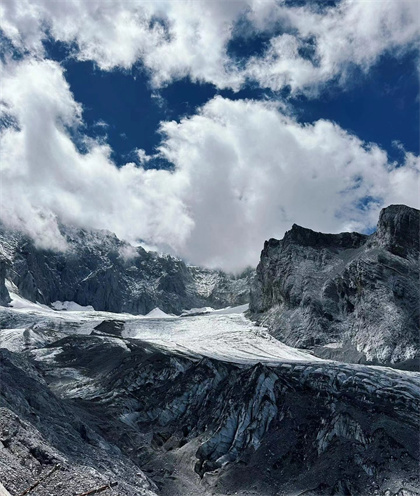 玉龍雪山,位于云南省麗江市玉龍納西族自治縣境內,主峰扇子陡海拔5596米,這里的高山雪域風景位于海拔4000米以上,擁有險、奇、美、秀的景色。在納西語中被稱為“歐魯”,意為銀色的山巖。其銀裝素裹,十三座雪峰連綿不絕,宛若一條“巨龍”騰越飛舞,故稱為“玉龍”。又因其巖性主要為石灰巖與玄武巖,黑白分明,所以又稱為“黑白雪山”。是納西人的神山,傳說納西族保護神“三朵”的化身。